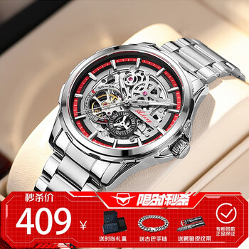 外观外形:选了好久,感觉这是同价位最好看的手表了表带材质:表带只有金属的,没有配皮带,有点可惜搭配风格:百搭,镂空机械表,科技感十足精准程度:目前还算精准其他特色:包装有点华而不实