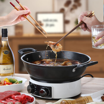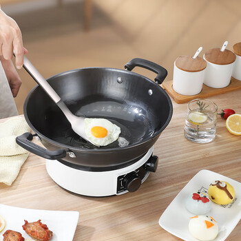 相对来说,这款比电磁炉好用,火力大而且快,和煤气灶几乎一样了,开始差点买那种方形的电锅了,幸好没买那种,铸铁锅健康,翻炒顺手,买回来马上用洗洁精洗了好几遍,洗出了很多黑水,然后用猪皮擦过了,然后又马上用的猪肥油炸了一锅猪油,然后就一点都不生锈了,黑黝黝的很亮,第一次用荣事达的锅,希望经得起时间考验,用久一点。