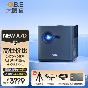 了解一下大眼橙NEW X7D口碑如何?投影仪性价比高吗?外形外观:好看,便携,不过其实挺重投影亮度:亮,开灯和白天也能清晰播放投影色彩:色域广,饱和度高音质音效:音质不错,比一般音箱好,有更高要求的可以接专业音响或家庭影院操作难易:简单,系统很简单,父母使用也可以刚收到货,就迫不及待的打开试用。也算是第一批H6用户了。从我拆包装的时候就感觉非常的严实,在运输过程中也能保证不会有蹭坏磕坏,这一点是非常好的。然后包装盒一打开,就看到几个独立包装,一个是主机,然后是配件,还有就是充电器。拆开主机包装,第一眼就感觉主机外观很精美,外表面也很有质感,显得非常高级。再看看遥控器,金属感十足,碰撞色也很好看,应该是做了亲肤设计,上手感觉很舒服。功能方面,4K画质非常清晰,虽然买之前也看到网上很多对4K持怀疑态度,但真正试用后,H6完全能满足家庭需求。自动对焦和无感自动梯度校正非常方便,对焦只要按其中的一个按键就能实现,移动投影仪也不用手动调整画面,很方便。投影亮度方面,我是下午傍晚在客厅试的,亮度很OK,打算白天光线强的时候再试试,不过我家光照不强,应该影响不大。哈曼卡顿的音箱效果真的是很棒,就很厚重的那种感觉。在客厅里用,完全够了。接口也是完全够用了,不过h6取消了网线接口,只能连接无线。但自我感觉,一般家庭也用不到网线连接投影设备。其实我最关心的就是他的画质,现在晚上用是完全够用了,当然了,投影的话好像确实应该拉窗帘,想象一下,我们去电影院看
