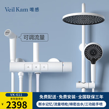 【真相大揭秘】唯感VK-611定温系列真的好吗?花洒是否值得买?挺好的,选了很久,看很多家店的评论都不太满意,最后随便挑了一家感觉靠谱一点的,最后东西还是对得起价钱的,水喷出来比较柔和,和描述的一样好,洗澡冲在皮肤上好舒服,挺好的,继续回购,出水量挺大的。产品功能特别好用。按钮可以开关外观材质金属不锈钢。不错,商品品质质量不错。好用,大品牌,品质值得保障,安装服务也是少有的负责,师傅很靠谱,总体使用了一个来月,质量好,品控好,出水量大,颜色一定得选银色,可千万别黑色,四种模式很好用,隐藏式下水也很靠谱,总体来说都还挺不错的,价格也不贵,以后还会继续换的淋浴。