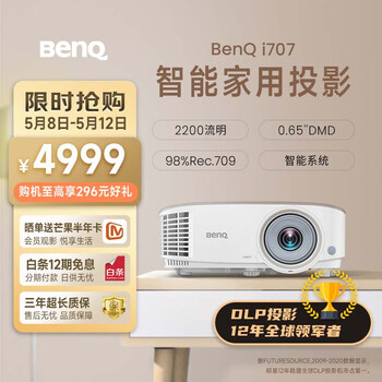 深入解读明基i707测评好不好?明基i707性价比高吗?因为孩子才2岁多又要学英语或者看会动画片,手机屏幕太小而且还对眼睛伤害是最大的,其次是平板,电视,伤害最小的目前就是投影仪了。了解了基本参数之后,选了好久,也对比了还有,这款ansi流明2000,分辨率1080p,芯片0.47dmd,只有这样投出来才真的达到1080p!语音控制也很灵敏。总之这样的参数能这个价格买到真的性价比很高了!视频是白天不拉窗帘的效果!真的很清晰,效果杠杠的!推荐预算有限,又想尽量买好一点的你!虽然N1上市了,但看了很多测评做了很多功课以后还是选择了N1 PRO,实机收到之后非常经验,灰色大气。支持侧投,放床头柜完美,音响也特别好,亮度也可以,白天看个球完全没压力。投在墙布上效果也很好,不需要买幕布了。光速对焦矫正,怎么转都能瞬间矫正。去年也买过几款投影仪,跟这个真是没法比,虽然小贵,但这钱花的值