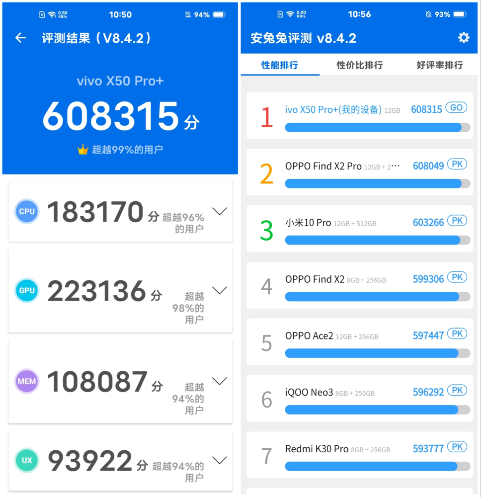 硬件性能方面,其实vivo X50 Pro+可谈的东西并不多,因为在“骁龙865+LPDDR5+UFS 3.1”这样的顶级硬件加持下,跑分什么的都是噱头。vivo X50 Pro+不管是日常使用还是高强度的游戏都流畅自如,再配合120Hz的高刷屏幕,卡顿什么的压根不可能出现。