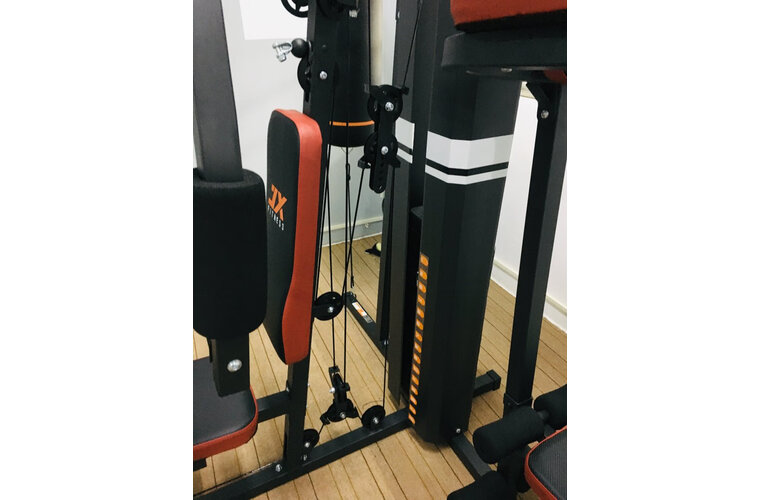 使用感受:总体还是很不错,基本上全身都能练到。军霞DZ303综合训练器械军霞综合器械还不错,适合公司健身房多人同时使用,还配有详细的使用说明图,沙袋还有一副拳击手套,购买本产品还额外赠送了一台动感单车,也是军霞自由品牌,还送了一套滚轮、跳绳和握力器套装,挺好的这款健身器材很适合家庭使用,可以把零散时间利用起来!器材到了之后自己安装的,用了五个小时。沙袋很棒,拳击手套一般。送到楼下,还好我把它装在楼下车库了。自己安装返现金200!会推荐朋友购买。军霞DZ303综合训练器械来了好几个包裹,东西很多。拼装过程比较复杂需要认真看参考手册。完成后效果非常好,很有气势,功能很多。军霞DZ303综合训练器械终于收到货了,非常非常喜欢,做工精致漂亮,已经被很多人夸了,真的太开心了,已经是他家的忠实粉丝了,以后还会继续买买买的。组合健身器很实用!网上浏览了好几遍还是选择了这一款!以前在单位也是经常用这种锻炼身体!价格优惠也挺好的!等伤好了就把它安排到位!忙里偷空,跟孩子玩乐高一样,用了三个晚上组装起来,感觉非常高大上。用了一段时间,感觉非常顺手。军霞DZ303综合训练器械非常好!第一点就是客服有问必答!有什么问题都可以及时处理好!第二点就是顺丰快递员很不错能及时送到!也帮忙上了楼!第三点就是安装师傅非常专业,用了一个多小时就安装好!第四点整体质量使用起来很不错!在家闲下的时间可以健健身!