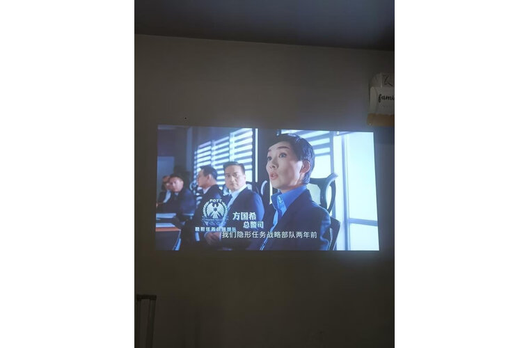 很薄的一款投影仪,随便客厅在哪放都行,还能搬回卧室用,音质效果很好,画质也比同价位高很多。开灯观看也很清晰,关灯效果更好。投影可以无感对焦调整,十分智能,一个遥控器搞点所有,比电视简单。老人家自己在家也能打开用,操作很简单,现在晚饭以后,我们家都会坐一起看电视,辛福感直线上升非常好,画质清晰,音质也很好,关键我家不是白色墙面效果也很好,非常喜欢,终于可以体验一下家庭影院的感觉了。赞赞赞!!!非常喜欢,小巧精致,方便携带,准备五一露营也带上。清晰度非常高,画质很好,无感对焦这些功能很敏捷