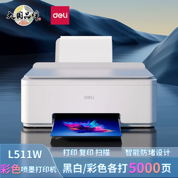 大家评:得力L511W打印机怎么样?得力L511W打印机值得买吗?还不错,用线连,用wifi连都可以。打印速度很快,声音不算小。打印出来的也非常清晰。非常适合家用!操作起来也非常简单,安装软件,按照步骤调试即可。如果嫌用网络连接麻烦,可以买个打印机专用的线连接电脑这个简单。挑选了很久,还是买这款了,主要是看上打印量大,墨盒便宜了,孩子上学,经常需要打印,这下好了,试了一下,打印很快,字迹清晰,还打印了几张照片,效果也不错,最惊喜的是微信无线打印太帅了,远程就能打印非常棒,质量很过关,品质有保障,相当不错的选择,好多朋友看我用都想买,我都推荐了