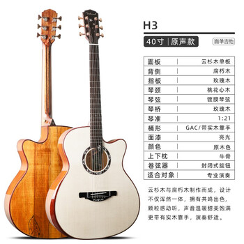 高颜值高性价比的一款吉他,这款吉他上手快,手感好,非常适合初学者。中低频音不错,拨弦的瞬间被震撼。质量好,吉他棱角圆滑,不硌手,指板厚度薄,轻松掌握**,弦距低,按弦不疼痛。