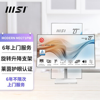 了解一下微星MD271PW显示器怎么样?微星MD271PW显示器值得买吗?外形外观:金属支架,很重很稳定,上下调节的阻尼器阻尼大小合适,背后RGB呼吸灯很电竞风,不喜欢也可以关闭,正面边框很窄尺寸大小:27寸2K刚好合适游戏效果:流畅自然画面无撕裂,OD拖影设置为中档,不会鬼影过冲,刚刚好刷新率:170HZ显色效果:画面艳丽,不会过冷,画质通透,色温偏暖其他特色:配了遮光罩,还可以用来防尘,左右各一个二级挂架,内置电源,桌面又干净了一点为了搭配白色主机特地选了白色的显示器,选来选去只有这一款符合所有的需求,包装特别严实,开机测了一下没有坏点,总体来说很满意,尤其是眼睛的标志,特别好看,美中不足的是包装箱破了一个洞,但是快递小哥又给用胶带修复了一下,还算可以,影响不大。