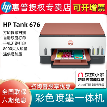 吐槽:惠普Tank 676打印复印一体机入手测评,惠普Tank 676打印复印一体机怎么样?和预计到达时间一样,包装的还挺好,里边儿的个个口都占了封条。即插即用小白也可以操作。外形外观:白色,看着很高端打印速度:还可以。打印效果:办公使用,要求不高。可以满足彩色要求。操作难易:蛮简单的,扫码还可以手机操作。打出来的字迹清晰,彩色扫描和黑白复印的都很好,有线连接、手机无线连接打印都很不错,打印机反应的时间在心理上能够接受,注墨方式设计新颖,打印机值得购买。 感谢客服售后发了一个安装包,解除了心中疑惑。物流非常快,无损包装。比较满意的一次购物