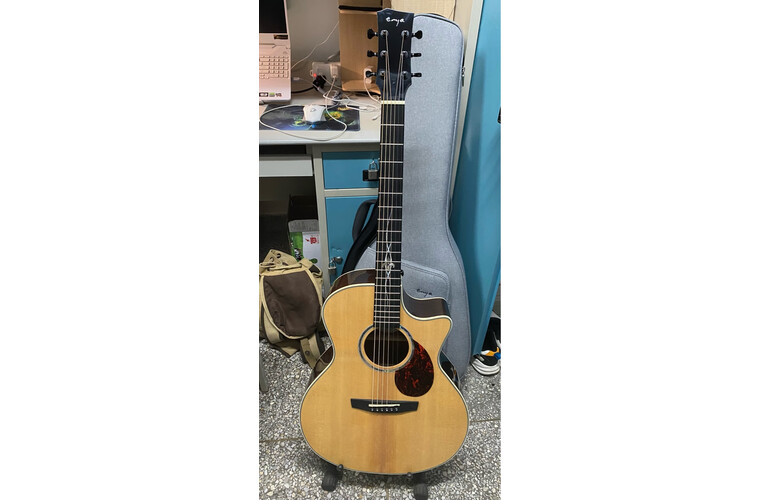 enya恩雅Q1M吉他直击体验感受,外观时尚好看?吉他弦距太高 压着手疼琴弦高低正好,颜值爆表,吉他老师弹奏一下,感觉声音非常完美,低音比较重些