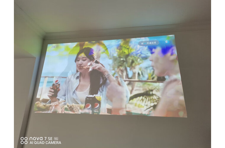 这下可以躺着追剧打游戏了?先说一下白天的效果,不加幕布能够在客厅采光很好的情况下能看的级别,稍微拉上窗帘,影院的观影感立马拉满。配合Apple TV完全是绝配,遥控器可以和Apple tv的互换。我加了一组HomePod mini做了立体声输出,基本上达到了入门级家庭影院的感觉。等吊装完成加抗光幕布再继续分享一下效果。