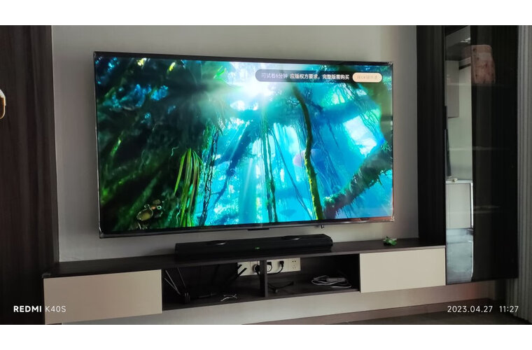 大屏即正义,85寸大屏,视觉效果非常棒。在商场不觉得,放在家里安装的时候,才能显示出它的大!