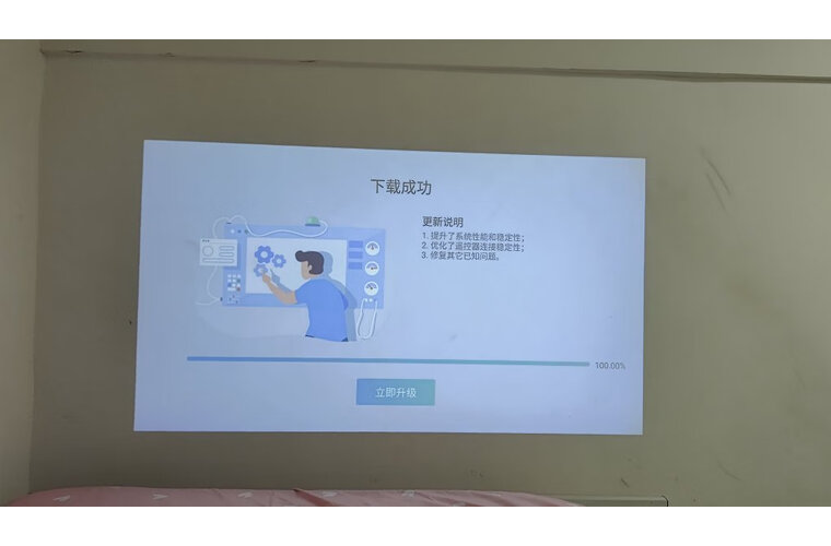 投影色彩:用幕布了还行包装挺喜欢的,然后大体感觉不错,还可以下载上传app,挺方便折腾的。