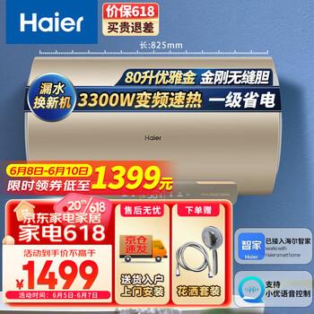 首选品牌,购买安装售后安心一条龙,趁着618活动又添置了不少电器,这款热水器不占空间,外观设计非常好看,双胆速热很奈斯