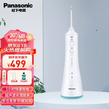 松下这款超声波洗牙器,外形设计好,使用时手持舒适,方便按键开关,五档可调节水压并有记忆功能,满足不同需求,一次充电可持续用很长时间,无线设计使用、清洗都很方便,水箱底下可以打开清洗,主机也可以水洗,物流快速