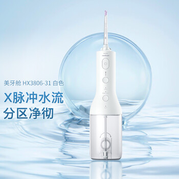 PHILIPSHX3806/31冲牙器是否值得买?PHILIPSHX3806/31冲牙器测评好不好?一直听说水牙线很好用,于是就购入了一套便携式的来用用。我本人是牙齿有一些问题,主要是蛀牙,平时日常刷牙使用电动牙刷,早晚两次。也使用牙线棒。水牙线给我的体验是,水流可以快速将卡在牙缝里面的食物残渣处理干净,这点比牙线棒的体验更好。水流的冲击力很强,建议前期使用轻柔模式。不过我还是会出现牙龈出血的情况。续航相当持久,已经一个月没有充电了,仍然有电可用。第一次购买使用冲牙器,主要是去做了牙齿矫正,想要清理牙缝或者自锁扣上的残渣很麻烦,牙线用起来也很麻烦。这款冲牙器外观不错,体积够大,手感舒适。 至于使用效果,如果力度轻了,很难清理干净,但是开大了就会更大冲击力。 推荐刚到手从轻柔适应一两周。 活动入手,价格实惠,京东自营 购买体验很不错