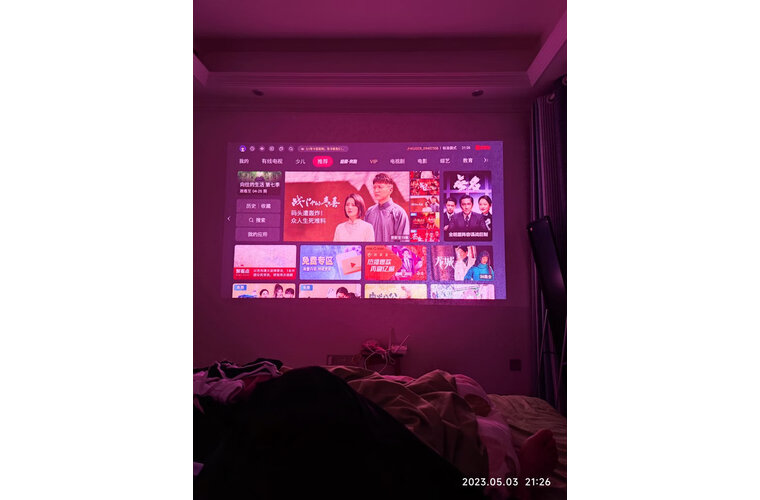 整体很赞,特别是色彩满意,搭配我的苹果盒子和NAS看4K简直不要太爽!经过一份各种调试,画面终于弄正了,直接投影在白墙上面,下面是手机拍摄的效果图,总得来说投影的画质还是很ok的,支持国产 |