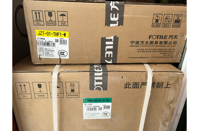 快递小哥,安装师傅都很负责。装修还没收尾,先在保护膜里待几天咯!方太F1-W昨天下单,今天早上送货,当天晚上安装。方太的家电质量确实不错,第三张是我家以前的方太产品,至今仍没任何问题,十年之久了。前两张是新的整套厨具,这主要是给八十岁老母亲用,很有科技感,油烟机触屏操作,简单方便,炉灶火力大,整套搭配非常好。