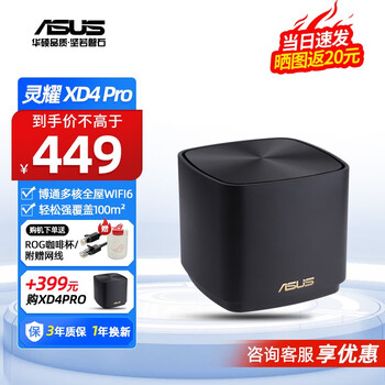 华硕灵耀魔方XD4 2Pack测评好不好?华硕灵耀魔方XD4 2Pack性价比高吗?路由器用了一个月了,装在客厅里的,电脑手机都是连WIFI,没有网线,传输速度:有5G和2G两种模式,速度很快,稳定性:很稳定,每个房间都有信号,穿墙效果:在房间角落会少一格信号,但是不影响刷视频,其他特色:路由器放在八楼,手机在一楼,可以收到两格信号,包装很大,从来没买过这么大的路由器,刷新了我对路由器的认知!传输速度:经测试,手机也能跑满ISP给的500M下行稳定性:目前使用了一个多月,从来没掉过线,稳定性高。穿墙效果:明显比WIFI5要好,以前我的床头信号非常差,经常转不出来;现在同样的位置上网就很顺畅。外形外观:八角形的主机还是第一次遇到,非常有个性。希望固件的设置可以更丰富一些,既然用了openwrt,就把功能都放出来。