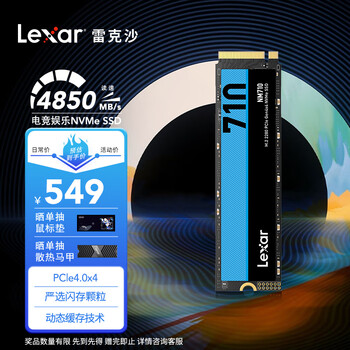 雷克沙LNM710X002T-RNNNC硬盘值得买吗?口碑如何?传输速度:传输速度稳定,传输速度快。体积容量:体积4T,体积标准十足。兼容属性:兼容性十足,适用各种类型的监控系统,专为全天候值守型监控系统而打造。其他特色:设备轻巧发货速度很快,京东的品质一如既往的优秀,相信京东。传输速度:初步使用感觉速度还可以。体积容量:以前1T的硬盘满了,这次选择4T的,感觉办公还是够用的。到手价格:还能接受。兼容属性:目前还可以,目前配上硬盘盒或者直接接电脑都可以正常使用。其他特色:京东快递速度快。