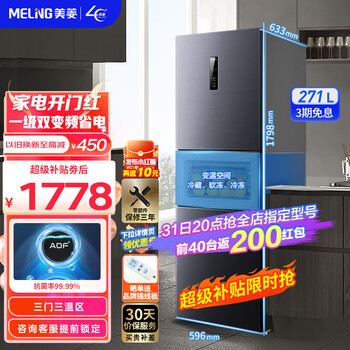 点击>>查看美菱 BCD-271WP3CX最新优惠底价>>