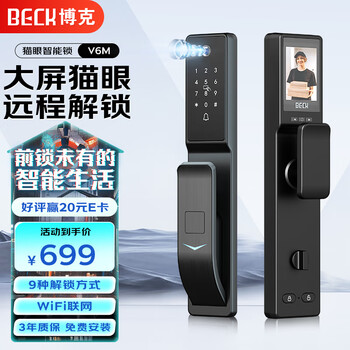 【曝光】BECK博克V6max指纹锁参数,BECK博克V6max好不好?外观非常简洁,看着很大气,舒服。灵敏度不错,指纹,密码,卡片都能开锁,还有备用钥匙,非常实用。客服很贴心,详细的沟通了家里门锁的类型,尺寸,指导下单,很感谢。安装很方便,师傅预约上门,很及时。师傅也很耐心,细心,并指导设置密码和指纹,客服还有相应的回访。总之,物超所值,很满意的一次购物。以后出门不会害怕忘记钥匙了。锁是一个小厂家代工的,但是质量感觉还是不错,而且京东的服务很到位,之前面板花刮花了一点,要求售后之后很快来了师傅重新换锁,前后两个师傅的安装都不错,也比较负责任,总体的购物感受还是挺不错。指纹识别也比较灵敏,也有虚位密码,智能猫眼。