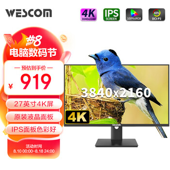 27 英寸的1PS 显示屏,4K画质非常高清,,如果后续升级成带喇叭的就更好了,喜欢这个四边窄边框设计,一次买了两台非常好用,下次继续复购。