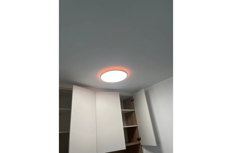 操作控制:可以用手机App控制或者语音非常方便.支持米家,天猫好多个智能接入.关注易来灯很久了正好上新品果断下手 大品牌质量有保障 超薄外观大气简约 显色指数高不伤眼 可接米家支持多种智能控制冷暖亮度随意调节非常不错 满意好评挺好的,灯很简洁,装着不会挑家装的样子,亮度也很好,有一圈氛围灯或者说是夜灯吧,客厅的主灯带遥控器,使用也很方便。发货很快,安装过程没有收取额外费用,主灯亮度高,背光氛围感拉满yeelight的这款超薄智能吸顶灯很不错,颜值高,做工好,全光谱高显色,色温亮度可调,氛围灯色彩可选,可联动米家,安装完之后点亮效果也很好,简约美观,安装师傅也负责,好评!效果不错,灯很薄,背面有氛围灯,可以单独关闭,大灯有遥控器,小的应该可以通过小爱同学关闭,家里还没联网,没有测试联网后的状态,亮度比我想象中略低外观款式:简单漂亮,孩子很喜欢