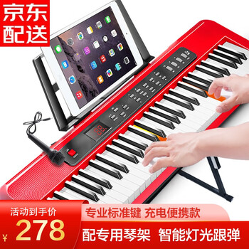 下单后第二天早上就送到了,618期间这物流速度也是杠杠的。我买的是白色款,非常漂亮耐看!手感:没弹过钢琴,但是这款电子琴我个人还是很喜欢的。摸着非常容易上手。声音:有不同阶的音,可以根据自己爱好选择。功能:按钮功能蛮多的,插上电就能用,也可以用电池。做工 :很精致,还送了琴架和琴包。
