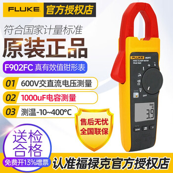 福禄克F902FC测评好不好?性价比高吗?产品还是挺不错的,还好用,不知道为什么,现在都流行用这种上两节七号电池的万用表,那没电了,岂不很尴尬?不过这个最便宜吧,仪器外面红色的相当于硅胶保护套,电池的装取需要把红色这个套取下来,然后一个螺丝,解决,比较不容易摔坏吧功能特点:除了普通万用表都具备的测量电压电流电阻,还有频率测量,电容测量,晶体管测量,通断测量,特别是交流电非接触探测非常方便。日常工作使用,功能足够了。使用场景:电器维修,日常电路检查等等。精确度:看说明书,各电气参数测量精度应该属于专业级的,德力西电气是中德合作企业,德国品质信得过。售后服务:看说明书介绍,应该不错,京东自营的商品比较放心。