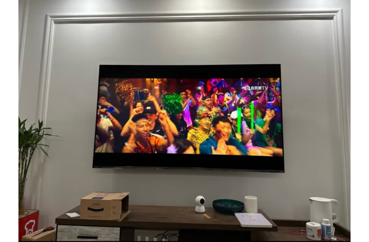 即送即装:安装很及时,买完马上就有客服电话沟通。电视刚刚安装好就来评价了,这画质太完美了,算是中高端电视了,声音画质都没得说,比较画质就是放大人物,放大后人物妆容清晰可见,海信电视85E5H外形外观:很漂亮,很薄看着画质很棒!