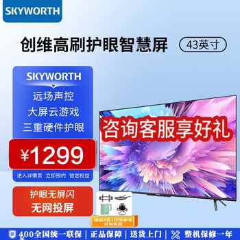 创维电视,国产老品牌值得信赖!家里一直用这个牌子的电视,之前那个电视用了十几年了还一点毛病都没有,物流很快,安装师傅跟着电视进屋的,按照要求安装到位了服务nice