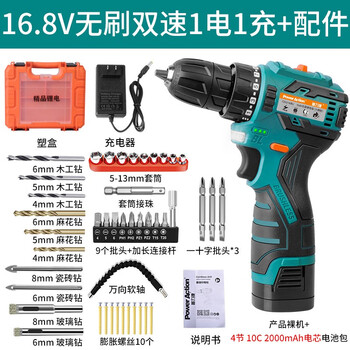 电钻很不错材质工艺:手感还不错功能设计:设计很合理操作控制:很方便外形外观:简单大气其他特色:性价比一般,功能还是很全面,钻头也很全!充电也很方便,京东送货也很快,非常不错,值得购买!