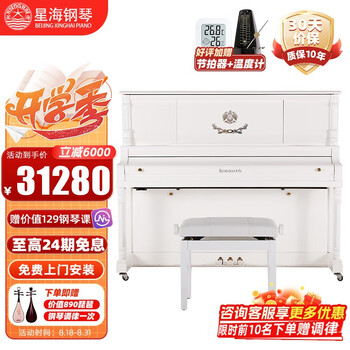 星海125A真的好吗?是否值得买?用了两三天了,大品牌确实值得,看了好多家,最终选了这家,品牌代言人也是我很喜欢的车晓,发货很快,送货上门的,组装很简单,十几分钟搞定,顺便锻炼了一下孩子的动手能力 产品音效:音色优美,键盘手感不错,还可以蓝牙连接手机控制,孩子爱不释手,每次弹完还得用卖家送的琴罩盖上,还有耳机模式,晚上练习也不会扰民的,总的来说非常不错,推荐购买 材质做工:孩子自己选的白色的,实物比图片漂亮,干净大气虽然迟到了一天,但还是感谢快递哥帮抬上楼,包装得很严实,安装方便,20多分钟完成键盘跟钢琴差别不大,声音跟钢琴还是有点区别的,最主要没什么异味,可以放心使用。能够接智能设备,很方便扩展学习,性价比高。小孩很喜欢,一装好就迫不及待的练手了。