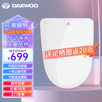 DAEWOODYQG4-505入手测评,了解一下DAEWOODYQG4-505智能马桶盖怎么样?京东超级快,第二天就收到了。马上安装使用,体验很棒。通电后很快加热,然后冲洗力度也很不错。大人和孩子都挺喜欢的,方便,实用,舒适度不错。而且操作简便,孩子一看变懂。确实是家庭必备的物品。最主要的是价格很实惠。卫生间一个插座都没留,没想到现在需要智能马桶盖了,看介绍说能改电,报着试一试的想法买下了,想着如果改不成,从其他地方拉个插线板凑合用也行吧。但来安装的师傅很认真仔细,技术水平也高,干活利落,很巧妙的改装了一个插座,很美观,非常满意厂家的这服务,不止改电、竟然还是免费的!盖子和原来马桶的贴合度也很好,产品用了几天,很好用,设计很合理,看外表觉得有点高,内圈有点小,但坐上去很合适。