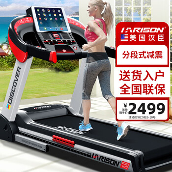 剖测分析HARISONDISCOVER-T3跑步机是否值得买?好不好?简洁大方,颜值超高,显示屏很大,数字显示清晰,触摸屏幕敏捷,声音可以接受,占地不大,放在客厅边看电视边走路很方便,平时躺沙发看电视的时间现在用跑步转移,一边长肉一边是运动消耗卡路里,感觉不错,这款跑步机是家用不错的选择!产品材质:产品质量没得说,和想象中一样,这个价位绝对可以说得上货真价实。跑台宽度:跑台净宽度46cm,家用跑步机来说绝对够用,很宽敞。声音大小:跑步机本身声音不大,但是跑起来脚踩到踏板上还是有声音,我家在一楼,不清楚如果楼下有邻居会不会受影响。占地大小:设计简约使用简单节省空间,原以为会把阳台占满,实际效果非常好。收纳难易:可以折叠,不用时可以立起来放下房。其他特色:喜欢它的智能,特别是和华为运动app快捷互联,可以更加科学、系统健身!