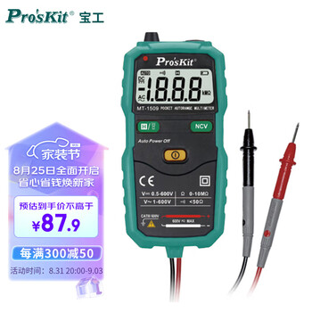 吐槽:宝工MT-1509-C万用表性价比高吗?好吗?发货速度确实很快,昨天下的单,今天上午就到货了,神速,东西不错,就是我想要的那一种,功能齐全完备,操作得心应手,精确度也没得说,好的品牌使用起来的感觉就是不一样,赠送的手提包也很不错,比较精致,推荐大家使用,不错测量效果:测量效果很好,误差很小,很方便,万用量程很方便测量,自动识别等级大小,还防止烧表,很好用。材质工艺:塑料的外壳,很轻松携带,很特别造型,很舒服。其他特色:带有LED灯,很人性化,到了晚上很方便读数字,很用心哈。操作使用:操作起来很方便,不用调节等级大小,直接去测量,很省事,很方便,推荐购买,极力推荐。