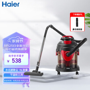 海尔真空吸尘器,国产大品牌,用着放心,京东快递就是快,点个赞,隔天便送到家门口 家里养猫很容易掉一地上的毛发,用这吸尘器轻松搞定,推荐