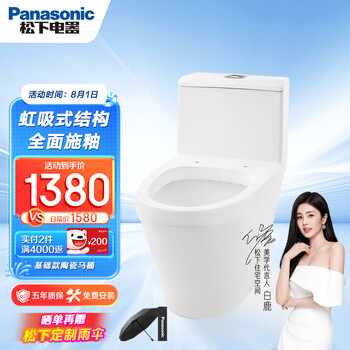 点击>>查看松下松下基础款连体陶瓷马桶400mm坑距最新优惠底价>>