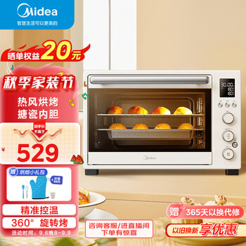 自营 美的(Midea)家用多功能电烤箱 大容积 上下独立控温 瓷易清洁内胆 双层隔热门·塘瓷内胆·热风对流·双层隔热门烤箱飙升款大容量 赠烘焙小礼塘瓷内胆双层隔热门外观时尚大气上档次 内里空间很大