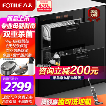 外形外观:很高端大气上档次 很有质感产品质量:功能齐全 智能app远程连接控制定时 304不锈钢材质 不生锈消毒效果:非常满意空间容量:大空间设计 锅类大件都能放进去 二层碗篮设计也很人性化 方便存放和使用