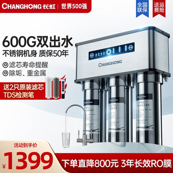 求大家普及下长虹CRO-600H407S性价比高吗?好吗?看了很多款净水器,觉得这款最适合我家的那种,款式好,声音低,而且滤芯寿命长,而且还有电视广告值得信赖。而且大家的评价都是很好,于是买了,自己安装有点风波,不过总算安装好了。有一个滤芯坏了,跟客服人员说了,又帮我送了一个好的滤芯,非常感谢!物流速度:一如既往的快,很快!出水速度:比想象中的快!静音效果:有声音,可以接受!外形设计:端庄,大方!安装服务:有安装视频,简单易学,个人安装无困难,只是要拧紧,不然会漏水、喷水!其他特色:过滤效果,需要观察!