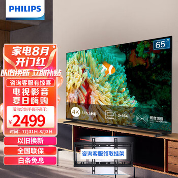点击>>查看飞利浦65PUF7295/T3电视+挂架最新优惠底价>>