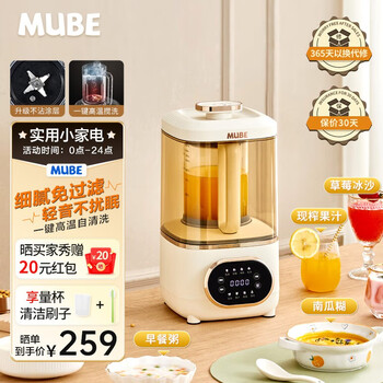 之前一直买的九阳的豆浆机,结果用了没多久东西就坏了。这个牌子的是之前买的绞肉机,结果没想到用着还不错,就想着买个破壁机,果然不出所料,特别的好用。外形很满意,声音也挺小的,普通豆浆35分钟就打好了挺快的。