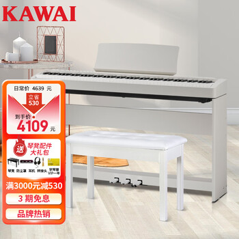 因为急着送给妈妈当生日礼物,综合选择之下选了这款,(雅马哈 kawai高端系列需要从外地发货,时间上来不及)。整体颜值:可以,也是选择的主要原因材质:一般,其实就是颗粒板或者刨花板铁皮,背部再加一块薄的挡板键盘触感:软,黏,因为弹过的电钢琴不多,不知道是不是比更便宜的款好得多,总之感觉触感没有8000+的水平,属于可以用的等级音色:高音尚可,比较脆,低音极度浑浊,音色远不及雅马哈的5000款,更别说clp或者更高系列了,那些说比雅马哈好的是没用过还是故意黑?带上耳机稍微好点功能:正常,可以外接手机放歌,也有节拍器伴奏和主要的几种音色切换,加不加混响之类的功能差别不大总结:爸妈只会简单的乐曲,他们用足够了,所以选择留下,;适用于初级娱乐或预算有限或空闲联手,那些小孩考级用的,录专门钢琴视频,希望在钢琴方面有进阶成长的还是算了,用这个琴打不了好基础。评论说钢琴老师都说很适合小孩子学习,那只能说钢琴老师也不太好。总之不算太差,但是也离“还不错”有十万八千里。但客服态度好,颜值在线,这是值得肯定的。
