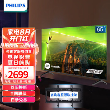 【曝光】飞利浦65PUF7007/T3平板电视参数,好不好?电视包装严实,电视剧的外观很大气漂亮,超薄机身,运行速度挺快的,内置有小爱同学,语音智能操控,方便智能,屏幕的清晰度和分辨率都挺高的,电视的音效也挺不错的,送货速度挺快的,物流服务也都挺好的,功能真的很强大。618送了挂装服务,非常满意推荐购买!6.18 活动时购买, 今天才上墙安装,当初纠结是 85 还是 75,上墙后大小合适,全家都比较满意,预算有限,还是购买了光分区的,开机后效果看上去比去实体看的不带的还是在层次,色泽,灰暗上表现好一些,音响效果特别不错,非常满意的一次购物