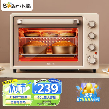 大家评:小熊DKX-F40C5是否值得买?好不好?40L独立控温|高性价比,宝贝收到了,简单大气上档次,价格经济实惠。关键是烤箱里边的空间在家里用绝对超大,烤箱里面还有一个小灯泡,随时可以观察烤箱里的情况,很漂亮哦,很喜欢。烤鸡翅,小鸡腿,蛋糕,效果很好。京东速度就是快!发货飞速,送货也极速。我非常喜欢这款电烤箱,因为它具有许多出色的特点和功能。首先,它的大小非常适合家庭使用,可以轻松容纳多种不同的食物和烘焙项目。此外,它还有许多预设的烹饪模式,如烤、烤面包、烤披萨等等,这使得烘焙变得非常容易和方便。另外,这个电烤箱还具有一些非常实用的功能,比如温度控制和定时器等。这些功能可以帮助你更好地掌控烘焙的过程和结果,确保你得到完烘焙食品。最后,这个电烤箱的设计非常时尚和美观,它有多种颜色可供选择,可以很好地融入到你的家居装饰中。总之,如果正在寻找一款高品质、实用性强的电烤箱,我强烈推荐这款电烤箱。