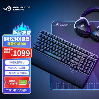 真实点评ROG游侠2NX键盘是否值得买?测评好不好?已使用几天,整体感觉不错,选的是冰淇淋pro轴,是线性轴,声音比较小。送了贴纸,三个备用轴,还有插拔器外观颜值:海盐配色,很清新好看。响应速度:2.4G无线,无延迟感。舒适度:按键手感符合我的习惯,比较舒适。续航:续航挺久的,就是因为电池大所以比较重。刚刚收到,立刻插上电脑,反应很快,价廉物美。我要推荐,值得拥有。用了一段时间了,说一下使用感受,按键回弹快,材质摸起来很舒服,放在桌子上很稳,反应很灵敏,喜欢!!键盘刚装好,打了几个字试了一下,整体感觉不错。设计紧凑,按键响声不大但明显感觉弹性好