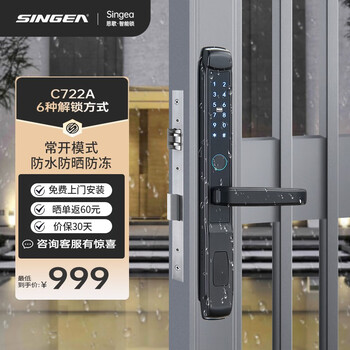 盘点SingeaC722指纹锁使用感受点评,真的好吗?门内把手太宽了,与门边间距太小了,顺手拉门把手时已经多次夹手外形外观:挺漂亮。颜色也很好,看着高大上。灵敏程度:一般,常要多次试开。手若湿就更难了。数字密码难调出。功能设计:满意。功能挺全的,还有蓝牙钥匙。材质工艺:不错,手感挺好。实物与描述的一样,质量相当好,卖家态度也好,有问必答,发货速度杠杠的,值得购买哦物流满分,包装快递满分,配送员态度满分,购物让人开心,吃土使我快乐~宝贝物超所值,很喜欢,下次还会来的外观设计漂亮,尺寸大小合适,包装仔细完整,宝贝手感不错,感觉很好,发货速度快,服务态度一流,给力!5星好评!刚好做活动,价格便宜了很多,性价比超高,真的特别划算已经用过一段时间了,效果不错,客服服务有耐心,解答详细,赞一个