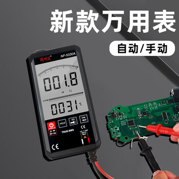 谁讲讲精明鼠NF-5330C万用表测评怎么样?口碑如何?万用表很好,能测量交流电压、电流,直流电压,电流,频率,电阻,温度,二极管和三极管,电容。我测试了一下交流电压和直流电压,频率,很准确,测了好几次,测量值几乎没什么变化,这说明重复性也挺好,非接触验电功能也很好用,离着一段**就开始报警了,很灵敏。一次满意的购物。家里原来的老式指针型万用表坏了,本人又喜欢家用物品电器自己动手DIY,小毛病自己动手修理一下,实在不行才会找人修理。所以没有万用表量电压电阻电容和火线是不行的,看别胜利数字带自动量程万用表,还带测温的,十分实用,果断下单,到手试用,比以前的老式表好用多了。