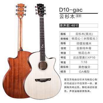 吉他音色很不错,按弦也很好按,适合新手,客服小姐姐也很有耐心的解答问题,店家还赠送了琴包和实用配件,以及教学课程,性价比挺高的!